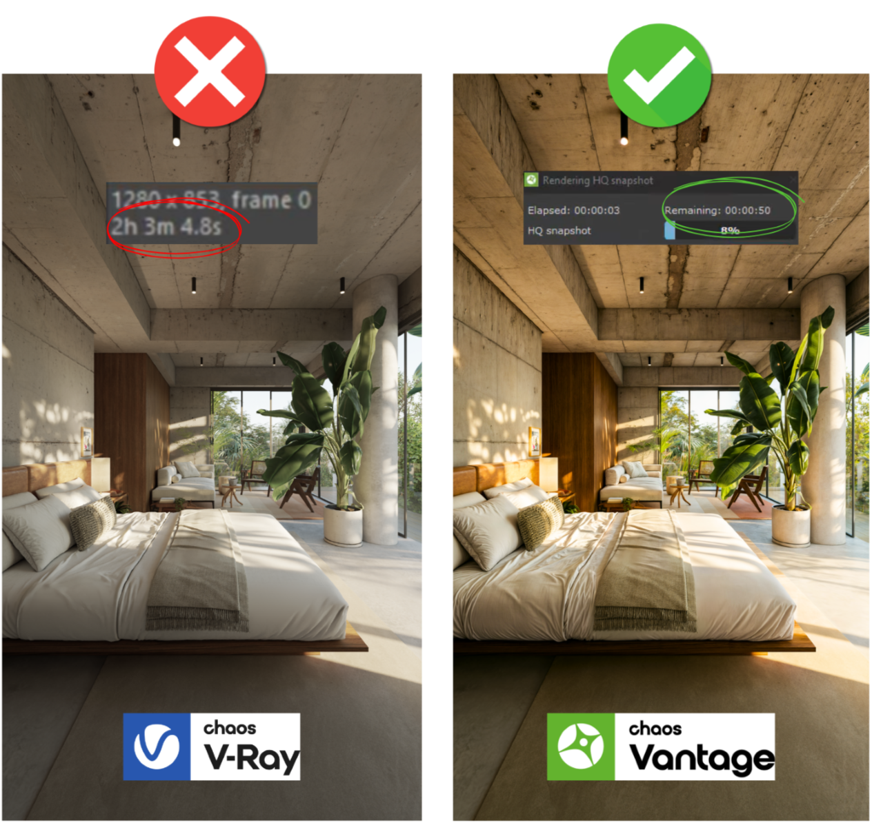 Velocidade sem perder qualidade: Transforme sua cena em uma imagem final em segundos com o poder do Vantage.